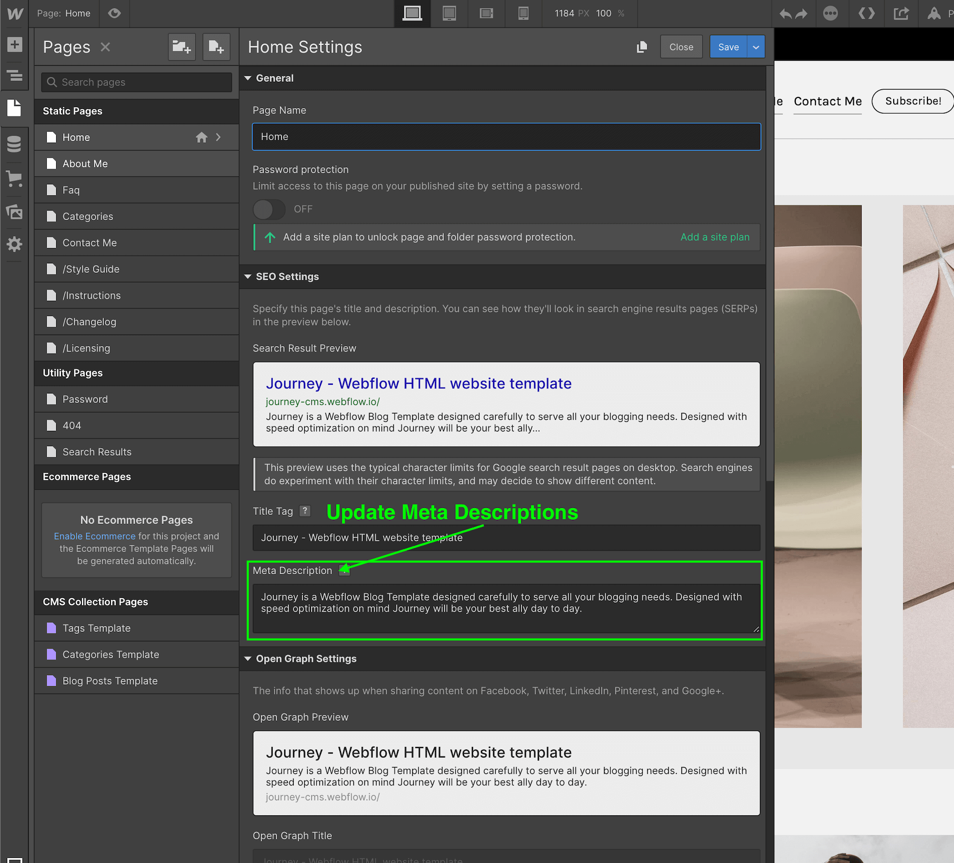 1. Select the element to edit (can be a Heading, paragraph, link, etc).